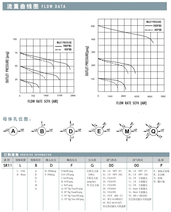 特性参数:最大输入压力:500psig, 3000psig输出压力:0-25psig, 0-50psig,0-100psig,0-250psig,0-500 psig安全测试压力:1.5倍最大输入压力适用温度:-40°F~+165°F(-40℃~+74℃)泄漏率:2×10ˉ8 atm cc/sec HeCv 值:0.08