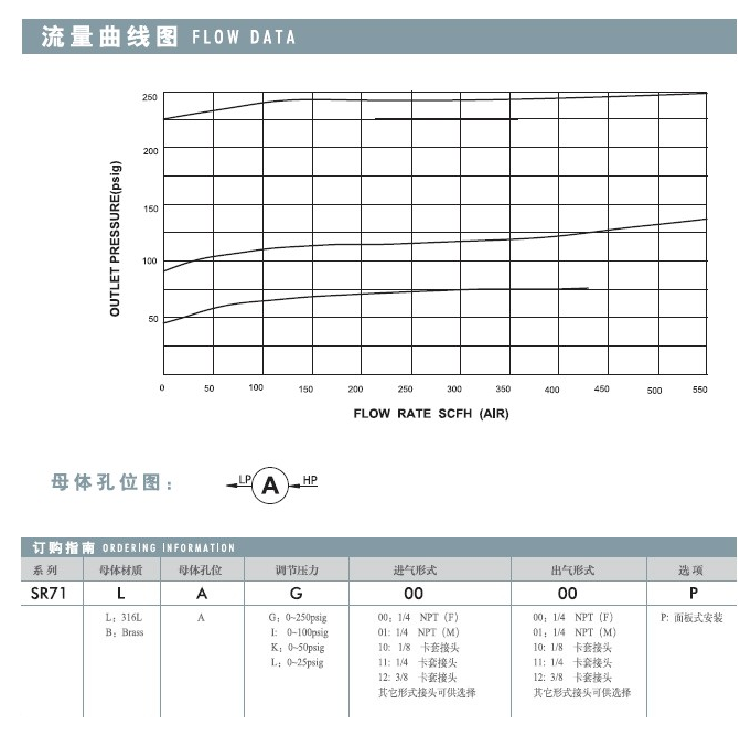 SR71系列不锈钢减压器,不锈钢膜片压力传输,压力控制准确,用于调节上游压力,适用于纯净气体、标准气体、腐蚀性气体等。